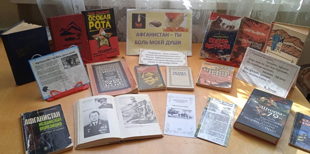 День памяти воинов-интернационалистов отмечается 15 февраля ежегодно. Именно 15 февраля 1989 года последняя колонна советских войск покинула территорию Афганистана, завершив десятилетнюю войну, которая унесла жизни более 15 тысяч советских солдат и офицеров. К Дню вывода советских войск из Афганистана в читальном зале оформлена книжная полка «Вспомним Афганистан»... |