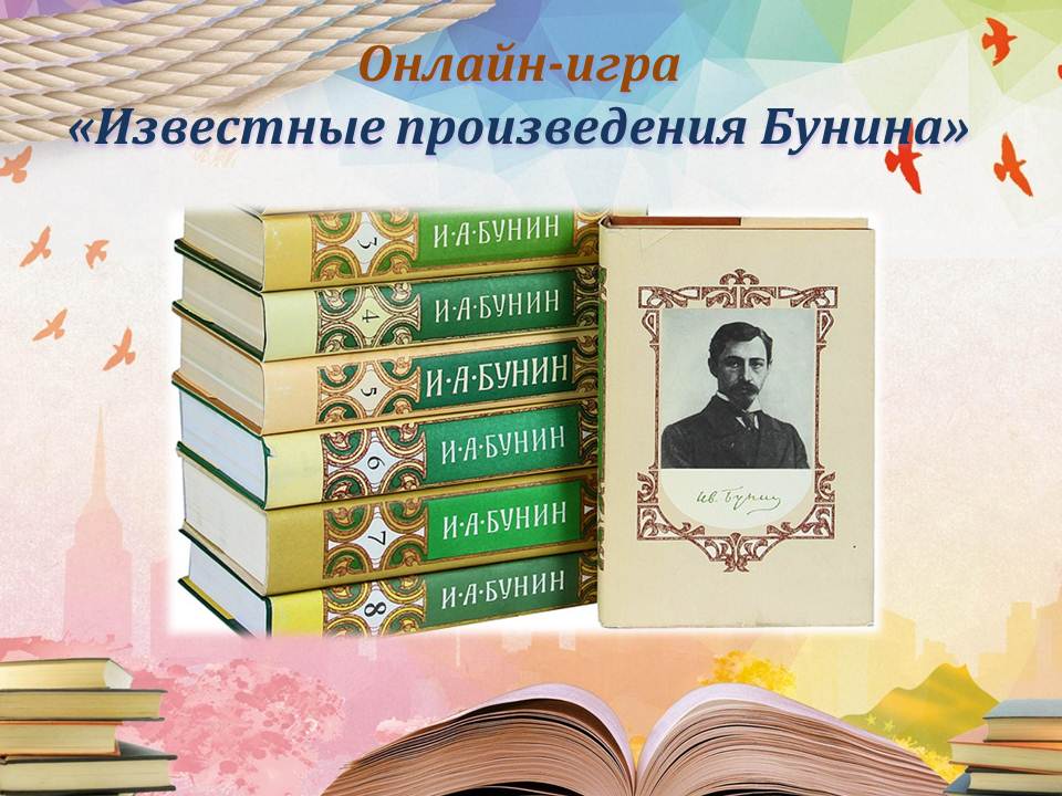 Ко дню рождения русского писателя, поэта и переводчика, лауреата Нобелевской премии по литературе 1933 года - Ивана Алексеевича Бунина, Судакская Центральная городская библиотека им. В.П. Рыкова подготовила онлайн-игру "Известные произведения Бунина"...