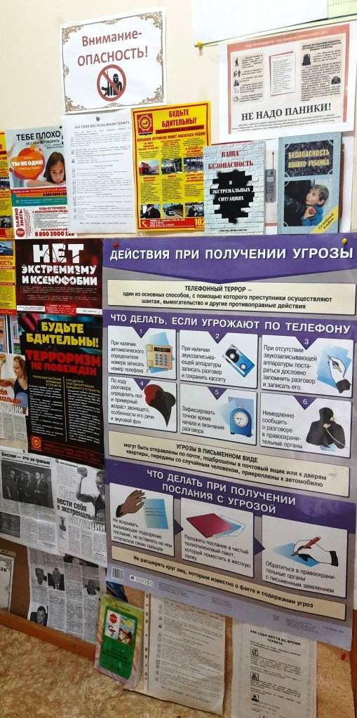 В Новосветской поселковой библиотеке подготовлен информационный стенд "Внимание опасность" - антитеррористической направленности, рассказывающий об опасности терроризма и содержит информацию реагирования в случае террористического акта...