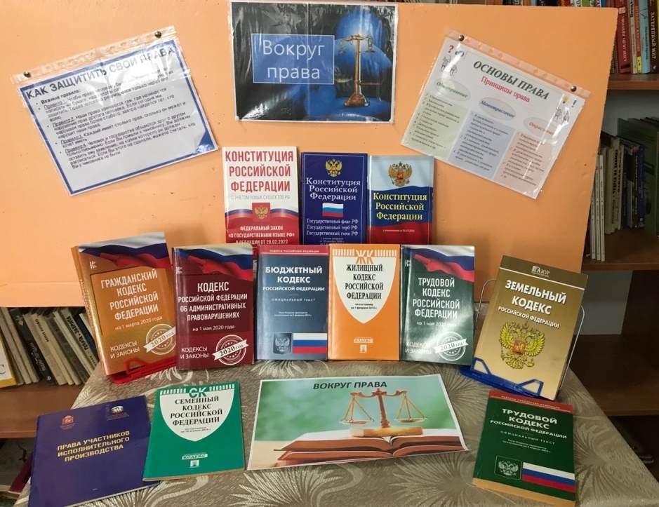 В Переваловской сельской библиотеке оформлена книжная выставка «Вокруг права». Целью данной выставки является повышение уровня эффективности и качества правового просвещения, формирование активной гражданской позиции и правового сознания. Материалы книжной выставки помогут читателям в изучении своих прав и обязанностей, познакомят с законодательными актами Российской Федерации...