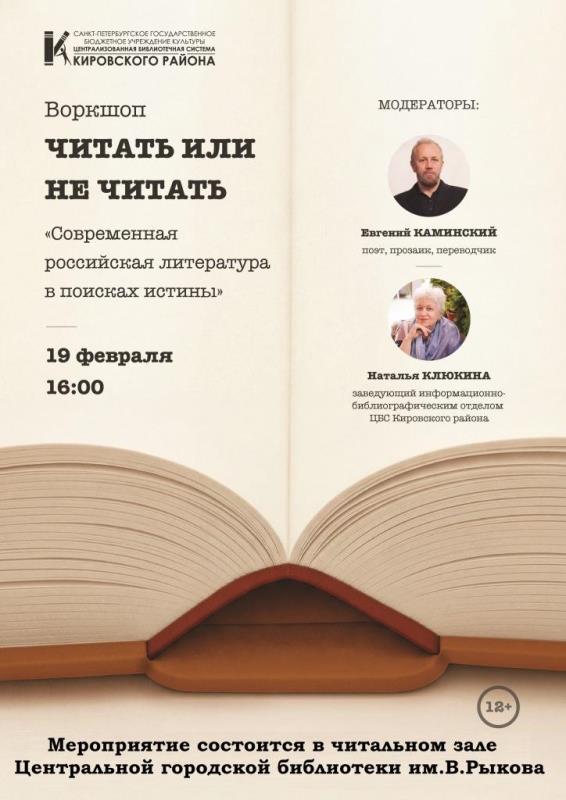 19 февраля в 16:00 в читальном зале Центральной городской библиотеки им.В.Рыкова состоится воркшоп в формате телемоста на тему «Современная российская литература в поисках истины»...