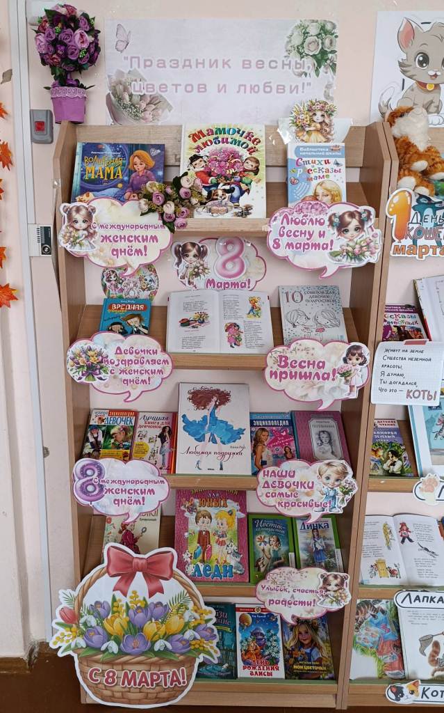 В преддверии Международного женского дня в Богатовской сельской библиотеке оформлена книжная выставка "Праздник весны, цветов и любви!". На выставке представлены рассказы и сказки о прекрасных женщинах, девушках и девочках, о бабушках и мамах, сестрах и верных подругах, которые каждый день дарят нам свою любовь и заботу, готовы прийти на помощь в трудную минуту и порадоваться вместе нашим успехам!!!