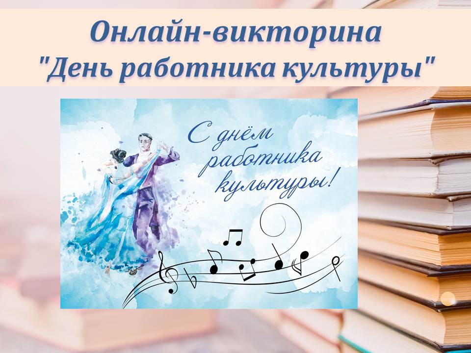 День работника культуры — профессиональный праздник работников культуры РФ. Отмечается ежегодно 25 марта. В более широком смысле под работниками культуры подразумеваются люди творческих профессий, деятели искусства, а также хранители и популяризаторы культурного наследия. К этой дате Судакская городская библиотека им. В.П. Рыкова подготовила онлайн-викторину "День работника культуры"...
