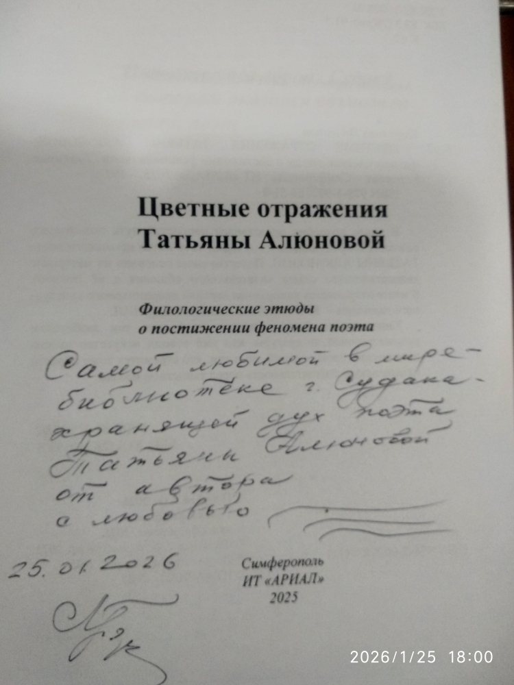 16:46 Презентация книги Людмилы Корнеевой "Цветные отражения Татьяны Алюновой: филологические этюды о постижении феномена поэта" | |